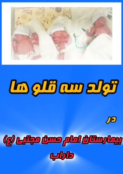 در یکی از شیرین‌ترین و به‌یادماندنی‌ترین رویدادهای پزشکی شهرستان داراب، نوزادان سه‌قلو شامل یک پسر و دو دختر در بیمارستان امام حسن مجتبی(ع) این شهرستان با تلاش و همکاری تیمی از متخصصان و کادر درمان متولد شدند. این عمل دقیق و حساس به همت دکتر خوشبخت(متخصص زنان و زایمان)، دکتر حشمتی(متخصص بیهوشی)، دکتر اثنی‌عشری(متخصص اطفال) و با حضور مؤثر پرسنل پرتلاش اتاق عمل، تیم مامایی و پرستاری بخش زنان با موفقیت کامل به انجام رسید.